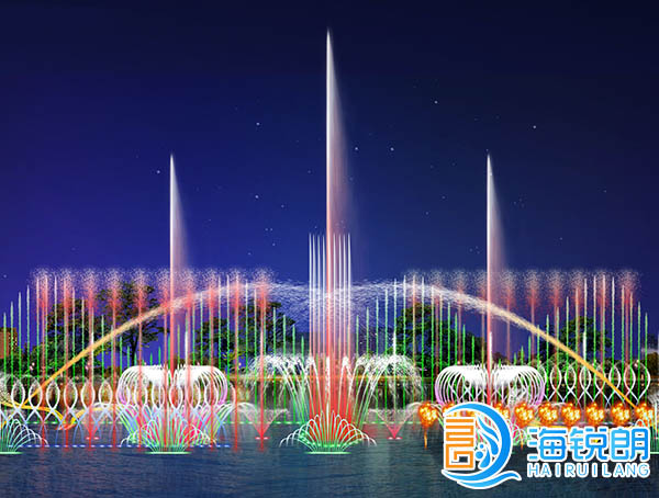 湖面彩色音樂數碼噴泉工程分控效果圖